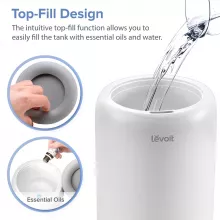 Its top-fill design means no messy tank removal—just lift the lid and pour. The wide opening also makes cleaning quick and simple. Plus, thanks to the built-in essential oil diffuser, you can add a few drops of your favorite aroma to enjoy all the benefits of humidification and aromatherapy in one. Smart features like a built-in humidity sensor, auto shut-off, and adjustable mist levels give you complete control over your comfort day and night.