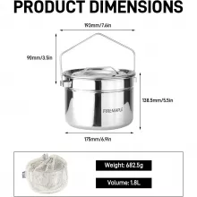 Cook hearty meals in the great outdoors with this 1.8L stainless steel camping pot. Made from high-quality food-grade SUS304 stainless steel, it is built to last, resist corrosion, and withstand high heat over a bonfire or camping stove. The included steamer layer adds versatility, letting you steam, boil, or cook your favorite camp meals with ease. With its foldable handle, this pot is compact and easy to store in your backpack, making it the perfect companion for hiking, bushcraft, or camping trips.