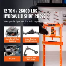 Take your garage or workshop to the next level with this robust and versatile 12-ton hydraulic shop press. Designed to meet the needs of both professional mechanics and DIY enthusiasts, this press is perfect for a wide range of tasks including removing and installing automobile bushings, bearings, ball joints, U-joints, pulleys, and gears. It’s also ideal for metalworking tasks like bending, straightening, and stamping, making it a must-have tool for anyone who tackles tough projects.