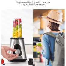 With its sleek design, high-powered motor, and versatile attachments, this personal blender offers a perfect balance between performance and convenience. Unlike many plastic jars, the robust glass container resists scratches, odors, and stains. And the included travel cup means your fresh blend goes wherever you go.