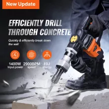 - Powerful 1400W Motor: This jackhammer is equipped with a 1400W industrial-grade motor that delivers 19J of impact energy, making it ideal for heavy-duty work like breaking concrete and metal with ease.