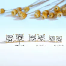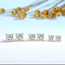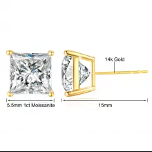 Available in your choice of 1.0ct, 2.0ct, or 3.0ct, these stunning studs are a celebration of modern luxury. The princess cut offers a bold, geometric brilliance that flatters any face shape, while the secure stud back ensures comfortable, all-day wear. Each pair comes with GRA and 14K gold certificates, confirming the premium quality of both the moissanite and the gold. These earrings also pass the diamond tester, providing peace of mind with every sparkle.