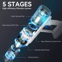 - 150AW Powerful Suction: Equipped with a high-performance motor, this vacuum delivers 150AW suction power, making it ideal for deep cleaning carpets, floors, and upholstery.