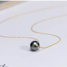 Elevate your jewelry collection with this exquisite 18K gold Tahitian black pearl pendant necklace, where classic sophistication meets modern refinement. Featuring a single, luminous 10–11 mm round Tahitian black pearl of AAAA quality, this necklace is a graceful embodiment of luxury, femininity, and enduring beauty. The deep iridescent sheen of the natural black pearl pairs perfectly with the warm glow of genuine yellow gold, making it a captivating statement for any occasion.
