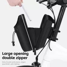 Whether you’re cruising through the city or tackling rugged trails, this 2.2L multifunctional bike handlebar bag is your perfect cycling companion. Designed for cyclists who value both function and style, this compact yet spacious handlebar bag offers all the storage you need without slowing you down. Carry your essentials—tools, snacks, water bottle, or even your phone—securely and within arm’s reach. With its sleek black finish and aerodynamic shape, it fits seamlessly on folding bikes, e-scooters, mountain, and road bikes alike.