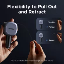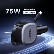 Stay connected and fully charged on every drive with this 2-in-1 retractable fast car charger. Designed for ultimate convenience, it features both USB-C and USB-A ports, delivering up to 75W of high-speed charging power. Whether you need to charge your iPhone 16, iPad, or Samsung Galaxy, this versatile charger supports the latest fast-charging protocols including PD 30W, QC, and Huawei FCP. Its retractable cable keeps your car clutter-free while ensuring you always have the right cable at hand.