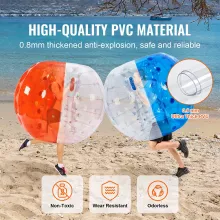 These inflatable bumper balls are crafted from 0.8mm thick, explosion-proof PVC, making them incredibly durable and resistant to tears. The advanced valve system ensures a tight seal to prevent air leaks, so you can keep the fun going without interruptions. With a 5FT outer diameter, these zorb balls are ideal for players between 4’9″ to 6′ tall, weighing from 110 to 330 lbs. The integrated soft PVC handles and widened adjustable shoulder straps provide a secure and comfortable fit, ensuring players stay safely inside while bouncing and rolling.