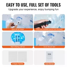 Setting up your bumper balls is quick and easy. Simply unfold, inflate using an air pump (not included), and secure the valve—you’re ready to roll in minutes! Each set includes a detailed instruction manual and two repair patches for minor fixes, ensuring these bumper balls last for years of entertainment.