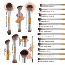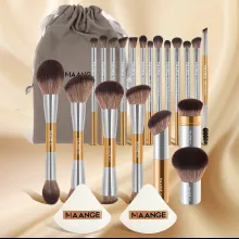- Complete Set: 20 multifunctional brushes for face and eyes, plus 2 powder puffs and a storage bag