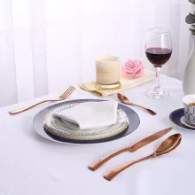 This flatware set is ideal for any occasion—from weeknight dinners to holiday feasts. The combination of black and rose gold offers a unique, eye-catching look that stands out on any table. Unlike ordinary silverware, this set blends artistic aesthetics with practical functionality. The weight feels balanced in your hand, and each piece is crafted to cut, scoop, and spear with ease. Designed to impress and made to last, it’s a must-have for anyone who values both form and function in their kitchen.