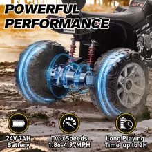 Built with a durable frame and tough, wear-resistant wheels, this vehicle handles a wide variety of terrains with stability and control. The powerful dual 200W motors and 24V 7AH rechargeable battery deliver speeds up to 5 mph and up to 2 hours of playtime. A spring suspension system ensures a smoother ride, even over bumpy surfaces, while the soft braking system adds a layer of safety during sudden stops. The extra-wide seat and large body give your child plenty of space to ride comfortably and confidently.