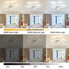 Bring elegance, light, and airflow into your space with this 26.7-inch modern bladeless ceiling fan with light. Designed with a stunning flower-shaped frame and a flush mount profile, it adds a sophisticated touch to any kitchen, bedroom, living room, or nursery. Its low-profile build is ideal for rooms with lower ceilings, offering a perfect balance of form and function without sacrificing style.