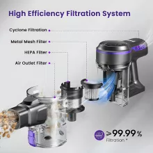 - HEPA Cyclone Filtration: The advanced cyclone filter traps fine particles and allergens, improving the air quality in your home while cleaning.