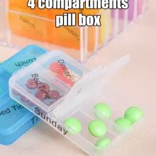 Engineered for daily use, this medicine organizer is crafted from 100% new high-quality plastic (PS + PP), making it strong, durable, and long-lasting. The 28 individual compartments allow for versatile use—perfect not only for pills but also for small accessories like earphones, paper clips, or even jewelry. Its colorful weekly pattern helps with routine management, ensuring you never miss a dose again.
