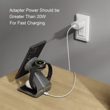 - 3-in-1 Convenience: Charge your phone, watch, and earbuds all at the same time with one port.