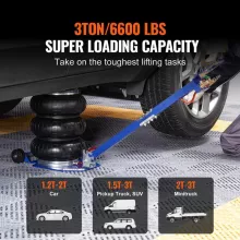 Make car maintenance faster, easier, and safer with the 3-Ton Triple Bag Air Jack. Designed for both home garages and professional workshops, this powerful air jack lifts vehicles in just 3 to 5 seconds — no more struggling with outdated mechanical jacks. With a robust lifting range from 5.5 inches to 17.7 inches and a heavy-duty 6600 lbs capacity, it’s perfect for everything from sedans to SUVs and pickups.