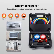 Take the guesswork out of air conditioning servicing with this professional-grade 3-way manifold gauge set, engineered to deliver accurate results and seamless performance across automotive and home AC systems. Whether you’re topping off a car’s Freon, testing a household air conditioner, or maintaining a refrigerator, this set provides the precision, durability, and compatibility you need. It supports R134A, R22, R12, and R502 refrigerants—making it one of the most versatile options on the market.