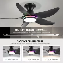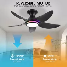 This innovative ceiling fan comes with a reversible DC motor for energy-efficient, year-round use. The fan includes five durable ABS blades and features two types of lighting: dimmable white light and an independent RGB ring light that adds a dynamic color touch. With 6 speed levels, 3 light temperatures, and timed operation options, it adapts effortlessly to any mood or moment. The unit supports remote control and APP control, so managing your settings is always convenient.