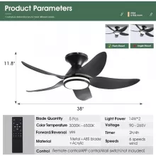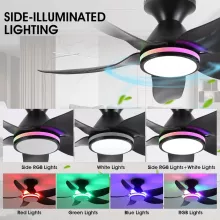 Bring modern design and powerful functionality to your space with this 38-inch low profile ceiling fan with lights. Equipped with both white and RGB lighting, this fan blends airflow and ambiance in one sleek fixture. Perfect for bedrooms, living rooms, game rooms, or even kids’ spaces, this fan delivers customizable light and air comfort with the tap of a button—or a swipe on your phone.