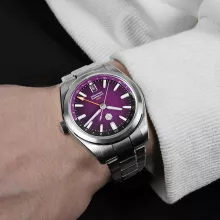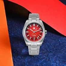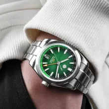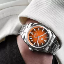 The dial, available in gradient shades of blue, red, orange, green, and purple, features a unique low-temperature enamel process that creates a 3D ceramic texture while remaining perfectly flat to the touch. Protected by top hat sapphire crystal with anti-reflective coating, the dial glows with BGW-X1 blue luminous markers and hands, ensuring legibility in any light. From the brushed stainless steel bezel to the screw-down crown engraved with a 3D logo, every detail speaks of craftsmanship and heritage.