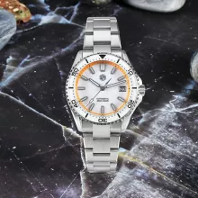 The watch’s sleek enamel dial paired with a luminous sapphire bezel is a statement in both form and function. Available in striking color combinations like white with orange, grey with orange, and black or white with red — this piece doesn’t just keep time, it makes an impression. Its 39mm stainless steel case fits most wrists comfortably, while the screw-down crown and case back ensure solid protection up to 660 feet underwater. The dial comes to life in darkness with BGW-X1 full luminous technology, offering either a vivid blue or warm orange glow across the hands, markers, and bezel.