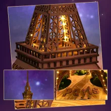 Unleash your creativity and step into the romantic charm of Paris with this intricate 3D wooden puzzle of the Eiffel Tower. Designed to inspire and delight, this DIY craft kit allows you to assemble a stunning replica of the iconic landmark, complete with a soft, ambient light to enhance its enchanting presence. Perfect for adults and older kids, this puzzle combines entertainment, craftsmanship, and artistry into one unforgettable experience.