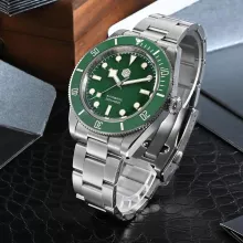 Step into a world of precision and elegance with this 40mm vintage-inspired automatic diver watch. Built for those who appreciate classic design with modern durability, this timepiece is more than just a watch—it’s a statement. Featuring a striking matte green dial paired with luminous snowflake hands, this piece effortlessly blends heritage style with cutting-edge technology. Whether you’re heading into the office, exploring the outdoors, or diving below the waves, this watch is ready for every moment.