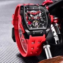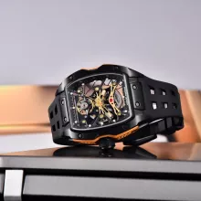 What sets this timepiece apart is its alien-inspired skeleton design—a window into the intricate world of mechanical movement. The combination of a transparent dial, curved tonneau case, and sapphire crystal finish creates a luxury watch that’s as much a conversation piece as it is a practical accessory. Every element is crafted for those who appreciate innovation, durability, and fearless style.