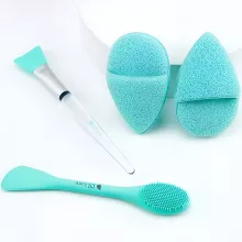- Includes 1 double-ended mask and massage brush, 1 silicone applicator, and 2 soft cleansing sponges