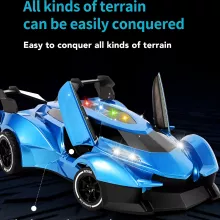 - Remote Control Stunt Action: Perform exciting stunts with the car’s ability to drift, go forward, backward, left, and right, all at the press of a button. You can even open the car’s remote-controlled door for added realism.