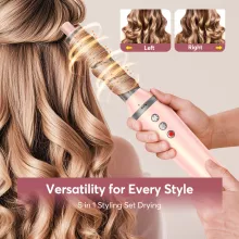 - 5-in-1 Styling System: Includes a high-speed dryer, dual auto-curling barrels, an oval volumizing brush, and a straightening massager brush.