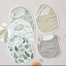 Make feeding time, teething, and little messes a breeze with this adorable and ultra-soft 5-piece set of baby bibs and burp cloths. Made from a luxurious blend of bamboo and cotton muslin, these bibs are designed to be gentle on your baby’s delicate skin while offering maximum absorbency. With cute, printed patterns and a lightweight, breathable fabric, these bibs are both practical and charming—perfect for everyday use from breakfast to bedtime snuggles.
