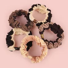 What sets these scrunchies apart is their simplicity and reliability. While trendy and fashionable, they’re also practical and long-lasting. Whether you’re heading out for a jog, preparing for a night out, or just lounging at home, these scrunchies are a must-have accessory that delivers comfort and style in equal measure. Each set includes five pieces in solid, timeless shades that blend seamlessly with your wardrobe.