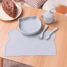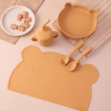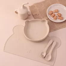 Every piece in this set is crafted with care to support your child’s development. The bear-shaped plate and bowl feature deep sections and raised edges to minimize spills and encourage independent eating. The spoon and fork have rounded edges and easy-grip handles that are gentle on tiny hands and gums. The soft, spill-resistant cup helps toddlers practice sipping safely, all while keeping messes at bay. Whether it’s breakfast, lunch, or dinner, this tableware set is ideal for babies aged 6 months and up.