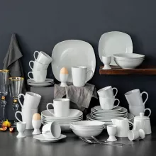 Enhance every meal with the stylish and elegant Elisa 50-Piece Tableware Set. Perfect for those who appreciate both beauty and functionality, this set includes everything you need to serve your meals in style. With 6 dinner plates, 6 dessert plates, 6 soup bowls, 6 egg cups, 6 cups, and 6 saucers, it’s an ideal choice for families, entertaining, or any occasion that calls for a touch of sophistication. Crafted from high-quality porcelain, this tableware set is designed to be both durable and stunning, offering a timeless design that pairs well with any table setting. The solid pattern and western style make it a versatile choice for both casual and formal meals.