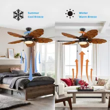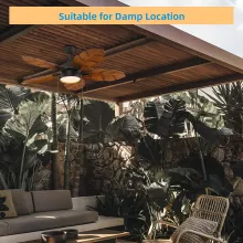 - 52-inch tropical-style ceiling fan with 5 durable ABS palm leaf blades