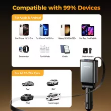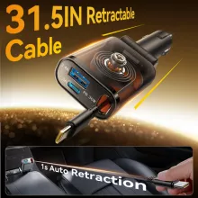 Unlike bulky car chargers, this ultra-slim design saves space and eliminates cable clutter. Its retractable cable extends up to 31.5 inches, while the adjustable 180° plug allows for easy placement in even the trickiest car setups. With intelligent power distribution, every device charges at top speed—so no more sharing slow chargers or waiting for your turn.