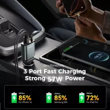 Stay powered up on every trip with this ultra-slim 57W retractable car charger. Designed for maximum convenience, it’s compact, lightweight, and fits perfectly in even the narrowest car cigarette lighter spaces. With a smart 3-in-1 design, it features a built-in retractable cable and two additional ports, letting you charge up to three devices at once. Supporting USB-C and USB-A fast charging, it delivers full-speed power to iPhones, Android devices, tablets, and more—making it an essential car accessory for busy drivers and families on the go.