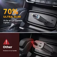 - Ultra-compact design – Measures just 5.11 x 1.77 x 0.88 inches, perfect for tight spaces and angled cigarette lighter sockets.