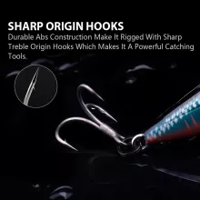 - Excellent hook-up rate – Equipped with two ultra-sharp carbon steel treble hooks.
