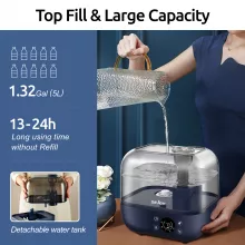 Its generous 1.32-gallon (5-liter) transparent water tank offers long-lasting operation, while the 360° mist nozzle ensures balanced humidification in all directions. Thanks to whisper-quiet operation, you can enjoy undisturbed sleep, work, or relaxation. The built-in water shortage protection shuts the unit off automatically, providing peace of mind during overnight or unattended use. Perfect for bedrooms, living rooms, nurseries, and home offices, this humidifier adds both function and comfort to any space.