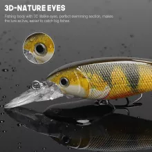 - Realistic design – 3D eyes and lifelike swimming action attract predator fish.