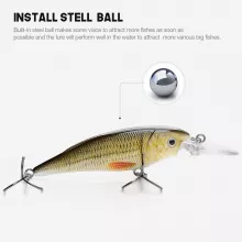 Take your fishing game to the next level with this 5-piece set of floating minnow fishing lures. Designed to mimic real baitfish, each lure measures 3.1 inches and weighs 0.4 ounces, making it the perfect size and weight for targeting bass, pike, trout, walleye, and other predatory fish. The lifelike 3D eyes, vibrant colors, and built-in steel balls create irresistible movements and sounds that attract fish even in tough conditions. Whether you fish in lakes, rivers, ponds, or from a boat in the ocean, these wobblers are built to deliver results.