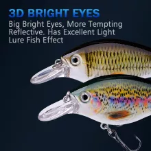 - Highly Realistic Design: 3D lifelike eyes and printed patterns simulate real baitfish to provoke strikes.