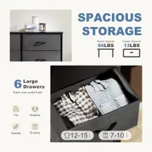- 6 Spacious Fabric Drawers: With six fabric drawers, this nightstand offers plenty of storage space for your everyday items such as clothes, toys, or electronics, helping you declutter your space.