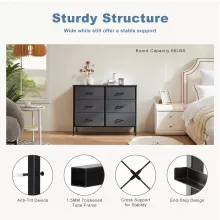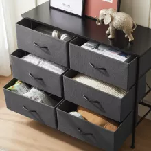 Transform your bedroom or living space with this versatile 6-drawer nightstand that combines style and practicality. Designed with a sleek wooden top and sturdy fabric drawers, this piece of furniture not only offers ample storage but also enhances the look of your space. Whether you’re organizing clothes, magazines, or toys, this storage chest serves as a chic yet functional solution to keep your home neat and tidy.