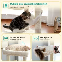 This cat tower isn’t just furniture — it’s a complete experience. The staggered levels are ideal for active play, helping cats burn energy and satisfy their love of climbing. Whether it’s a peaceful nap in the hammock, a territorial scratch on the sisal post, or a playful leap from tier to tier, every feature is designed to meet both comfort and entertainment needs.