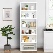 Looking for a stylish yet practical storage solution? This 6-tier floor-standing bookshelf is the perfect addition to any room in your home. Designed with modern elegance in mind, its sleek white finish and open design will complement any décor while providing ample space for your books, photos, plants, and cherished trinkets. Whether you need it for your living room, office, or bedroom, this bookshelf offers both style and functionality.