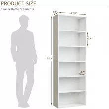 Crafted from high-quality, durable materials, this bookshelf is designed to last. Its waterproof and scratch-resistant particle board ensures that it can withstand daily wear and tear. With a total height of 71.3 inches and a width of 21.9 inches, it offers six spacious shelves that can hold your favorite items. The open design allows you to display your collection of books, decorative items, and even potted plants, creating a personalized touch to your space.