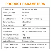- Easy Installation: The sensor is simple to install and compatible with DC 5V-24V power sources, making it perfect for use in various lighting setups, including LED strips, cabinet lighting, and entryway lights.